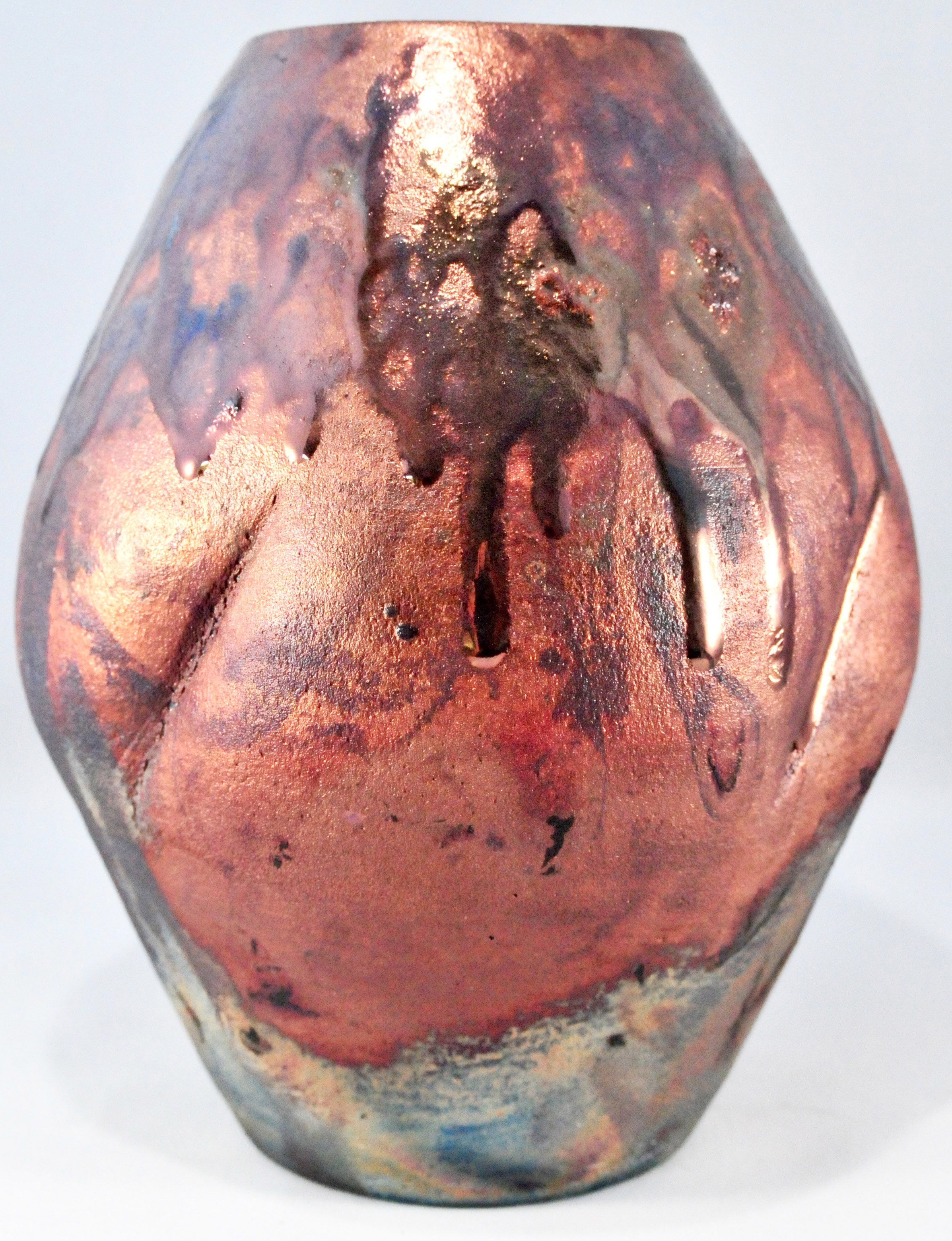 Raku Fired piece inspired by a helicopter flight over the Kilauea Volcano on the big island of Hawaii